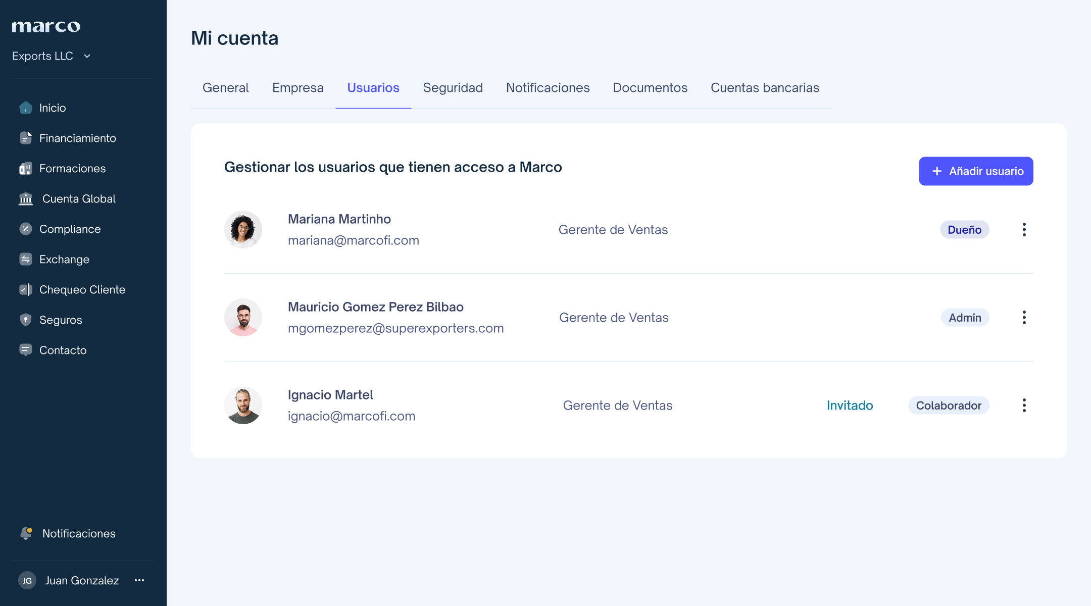 Para gestionar los usuarios que tienen acceso a tu cuenta de Marco, seguí estos pasos:
